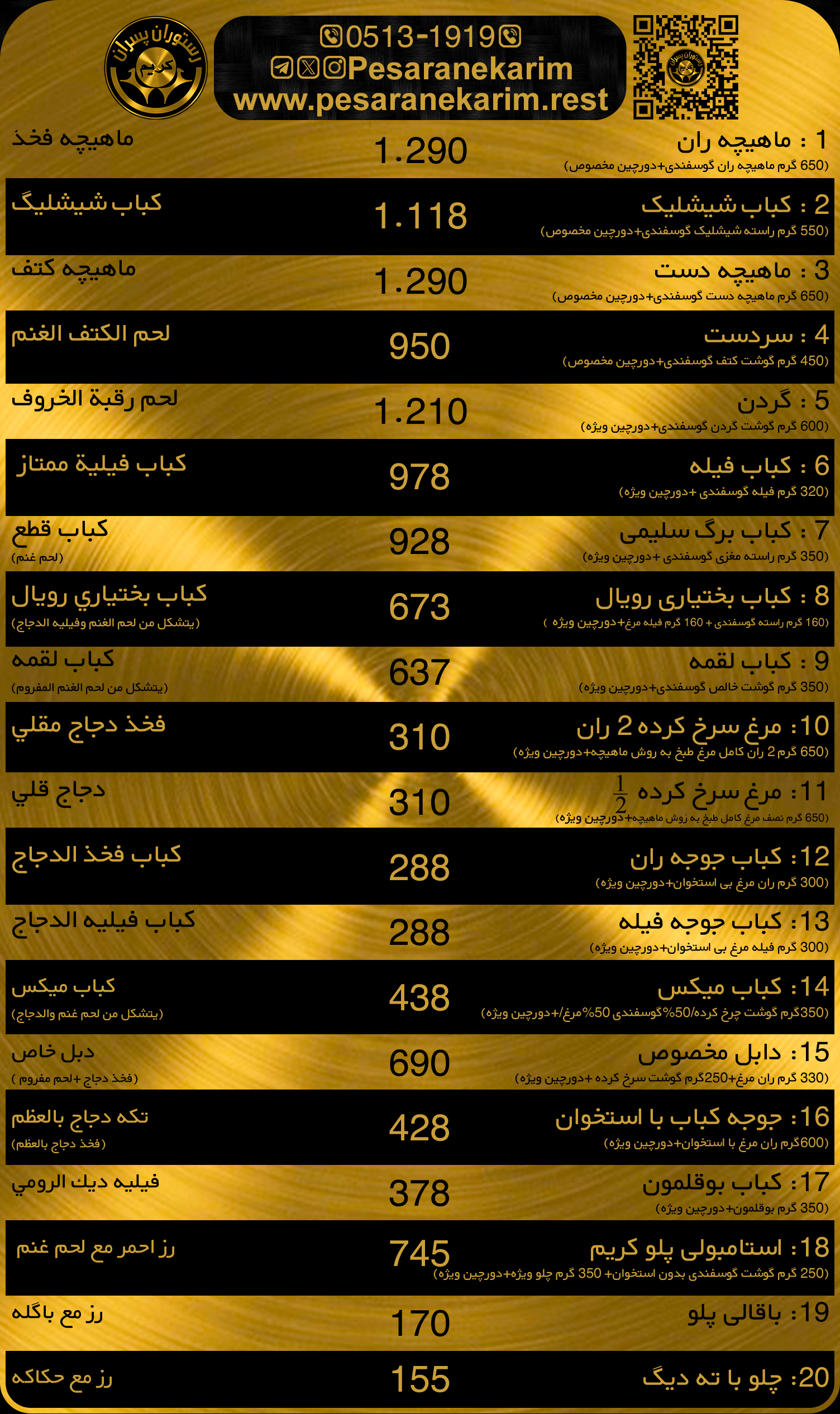 تمامی غذاها بدون چلو (برنج) میباشند